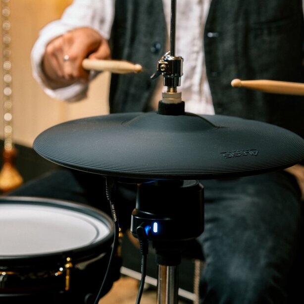 El hi-hat magnético activo de 12 pulgadas es un sistema magnético de soporte de excelente calidad y gran facilidad de ejecución. Al igual que los platillos, su superficie de percusión de 360 grados y triple zona ofrece una respuesta excepcional. La detección magnética de posición garantiza una alta precisión en la reproducción de los movimientos del pedal, lo que significa que este sistema sin contacto es inigualable en su exactitud. Esta unidad, alimentada por un módulo, se puede utilizar con una amplia variedad de soportes de hi-hat y técnicas de interpretación.