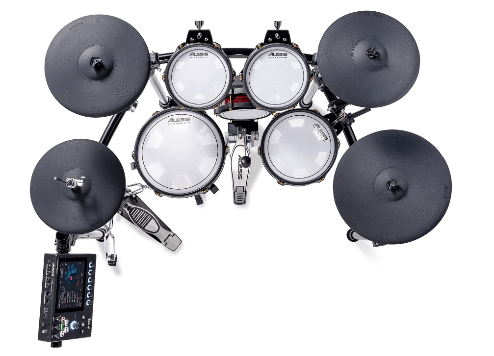Experimenta con la función de superposición de pistas para crear articulaciones y mezclar micrófonos individuales. Las opciones de control incluyen codificadores rotatorios, potenciómetros de volumen independientes y transmisión por Bluetooth 5.0. Crea con un motor de disparo personalizable compatible con todos los disparadores de Alesis E-kit modernos, conectividad MIDI y almacenamiento USB para importar muestras.