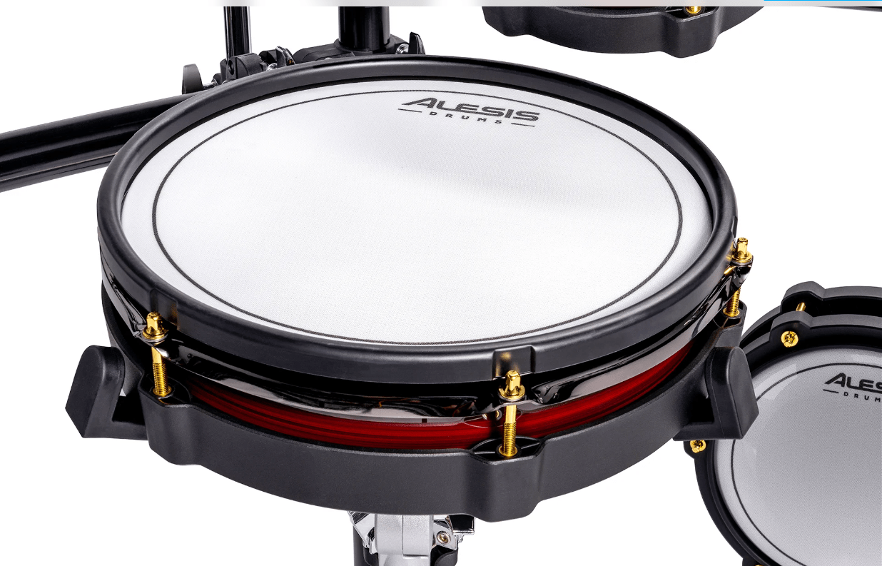 Una caja de 12″ de doble zona con sonidos independientes activados en el parche, el aro y el golpe de aro, seguida de toms de 8″/8″/10″ de doble zona y un bombo de 8″, proporciona una amplia superficie de interpretación, adecuada para todo tipo de pedales de bombo simples y dobles. La tensión se puede ajustar en todos los parches de malla, lo que permite configurar el nivel exacto de rebote y expresividad según sus preferencias. Los puntos calientes no deseados en los parches se eliminan con nuestro exclusivo diseño patentado de sensor anti-puntos calientes (Patente de EE. UU. 9,424,827).