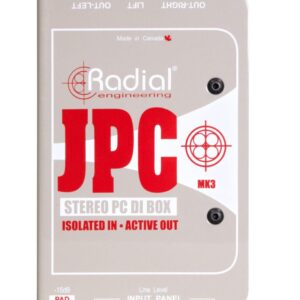 La JPC es una caja directa estéreo fácil de usar con prácticamente cualquier dispositivo electrónico. Utiliza búferes activos y aislamiento por transformador para crear un circuito híbrido que bloquea los bucles de tierra y reduce el ruido del sistema. Además, incorpora condensadores de bloqueo de CA para evitar que el ruido del sistema de audio se filtre de vuelta al ordenador. La selección de conectores de entrada de ¼», RCA y 3,5 mm facilita la conexión con todo tipo de fuentes de audio no balanceadas, como ordenadores, smartphones y tablets. Las salidas son XLR balanceadas de nivel de micrófono para alimentar sistemas de sonido en cascada y PA. La JPC se alimenta mediante alimentación fantasma de 48 V desde una mesa de mezclas, lo que permite su uso en conciertos sin necesidad de una fuente de alimentación externa.