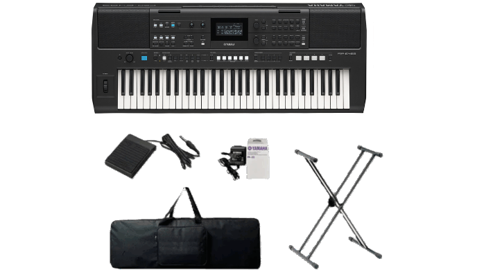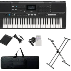 KIT TECLADO YAMAHA PSR E483 + PA-150 + ESTUCHE + BASE DOBLE + PEDAL SUSTAIN