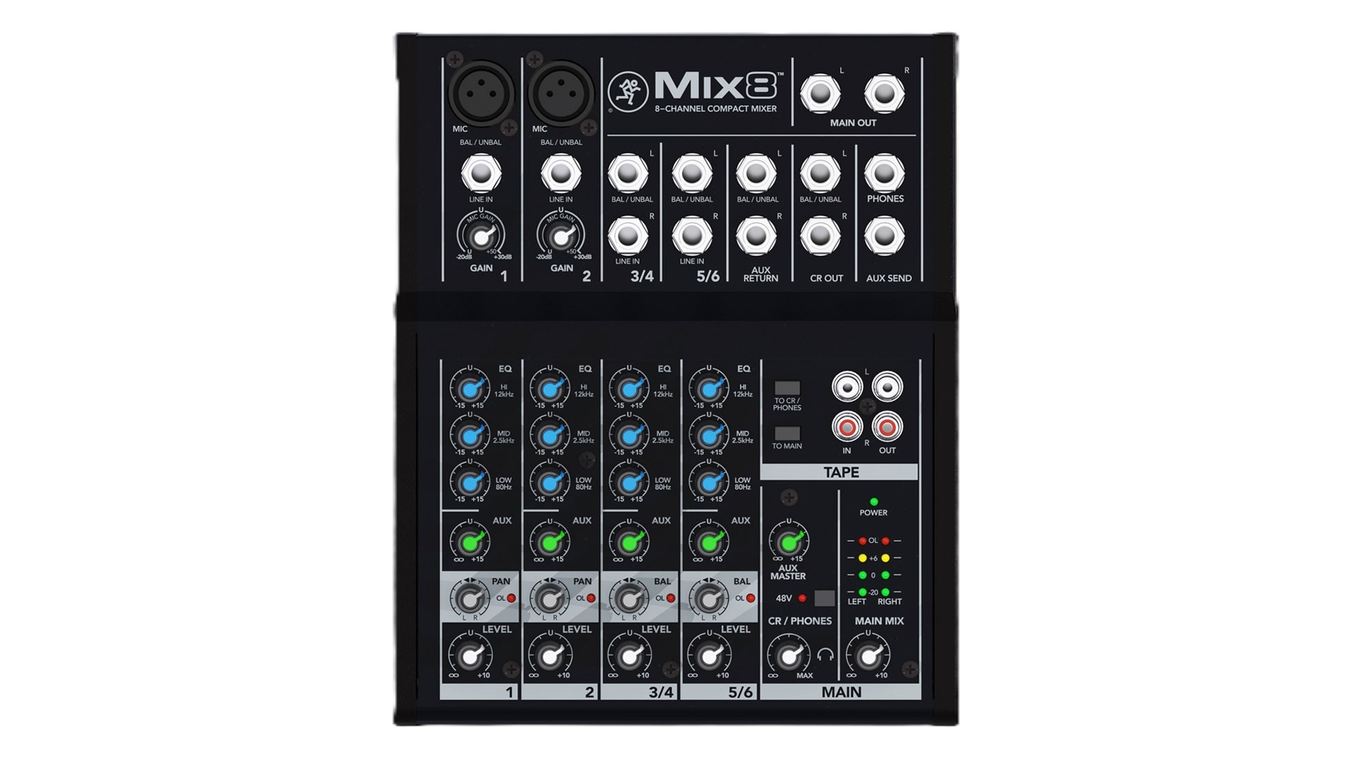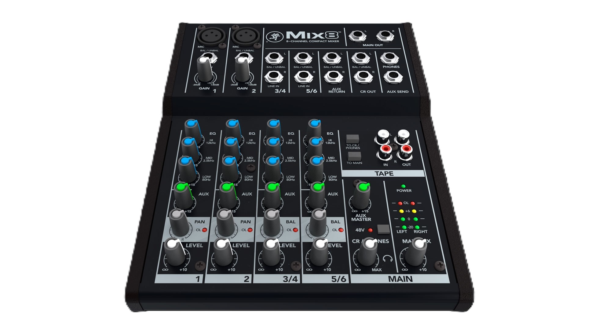 Mackie ha traído mesas de mezclas compactas de nivel profesional a las masas desde que debutó la LM-1602 en 1988. La Mix8 es una mesa de mezclas de 8 canales que amplía nuestra herencia de diseño de grandes equipos asequibles para verdaderos músicos y creadores de contenidos. Con nuestros preamplificadores low-noise, un ecualizador de 3 bandas y envíos auxiliares para cada canal, una ruta de I/O RCA para grabación y controles de volumen separados para auriculares y monitor principal, la Mix8 es un versátil caballo de batalla para creadores que necesitan más control sobre su audio.