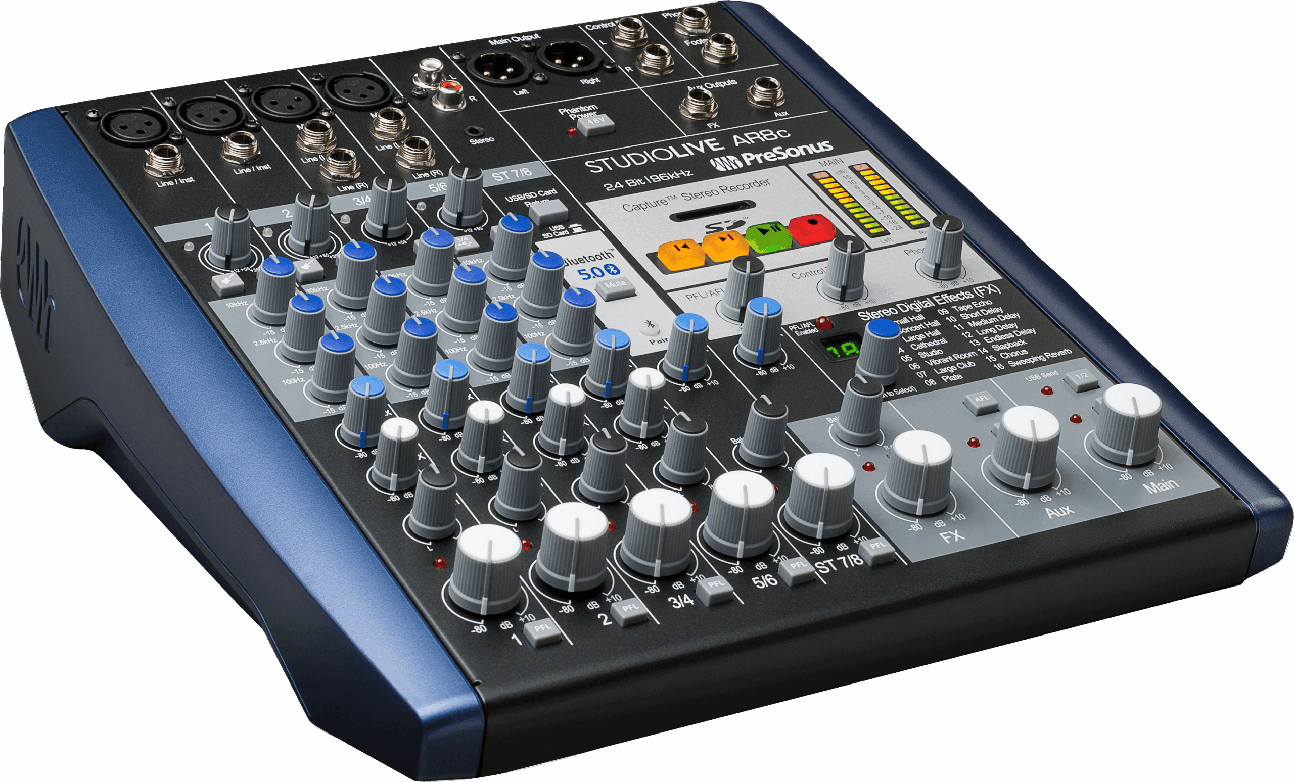 Con su diseño de mezclador analógico familiar nada más verlo, la StudioLive® AR8c es la forma más fácil de grabar podcasts, transmisiones en vivo y producciones musicales. Con un frontal analógico impecable con cuatro preamplificadores de micrófono XMAX de alta ganancia y una interfaz de audio 8×4 USB 2.0 compatible con USB-C™ a 24 bits y 96 kHz, el diseño híbrido de la StudioLive AR8c facilita la grabación y mezcla. Añade herramientas como un ecualizador analógico musical de 3 bandas, amplificación de micrófono/línea para fuentes de entrada de bajo nivel y dispositivos de consumo, conectividad Bluetooth®, una grabadora SD estéreo y entradas para instrumentos de alta impedancia, y tendrás una potente herramienta de broadcasting y grabación que satisface las necesidades de los músicos y creadores de contenido modernos.