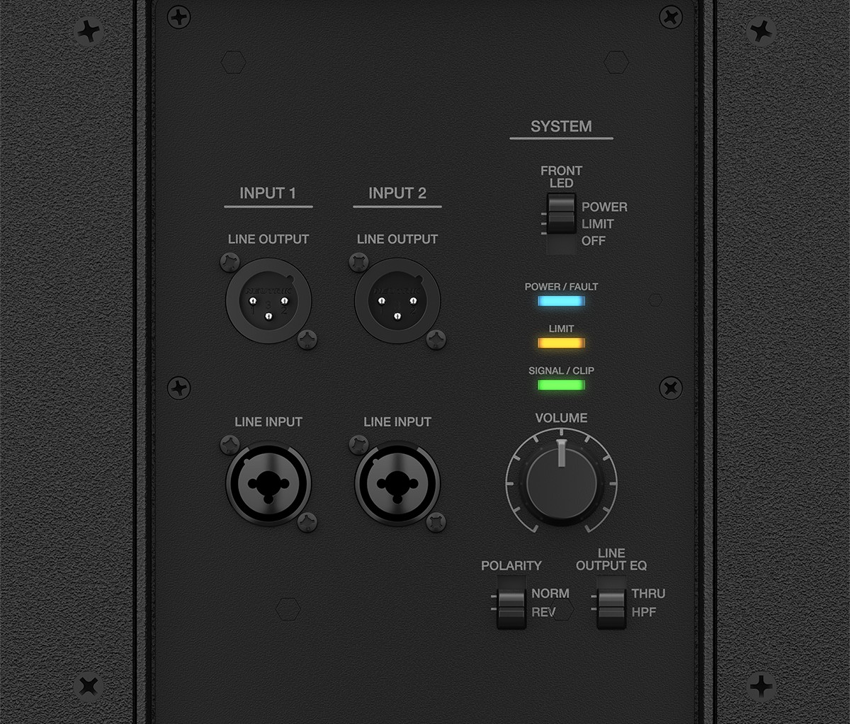 El ecualizador de salida de línea ajusta la salida del subwoofer F1 a un filtro de paso alto o a un rango completo, lo que permite seleccionar fácilmente el crossover cuando se utiliza con un altavoz principal.